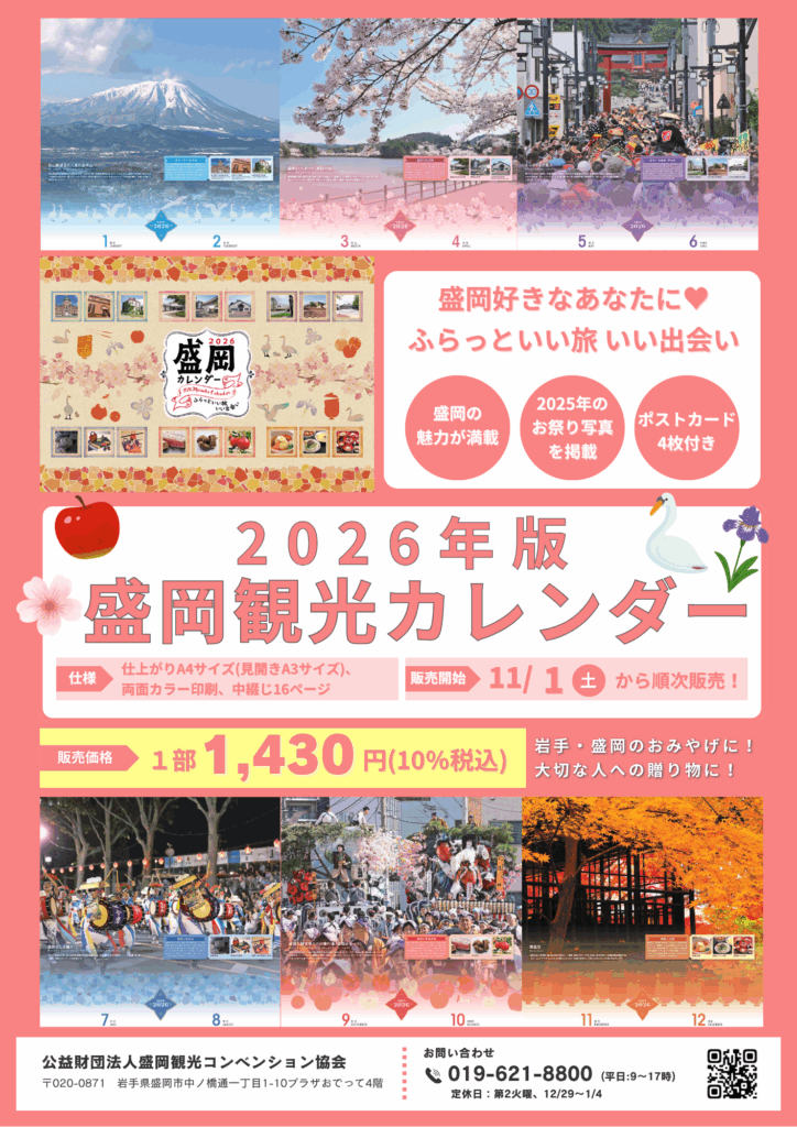 毎年ご好評をいただいている「盛岡観光カレンダー」の2026年版が完成!