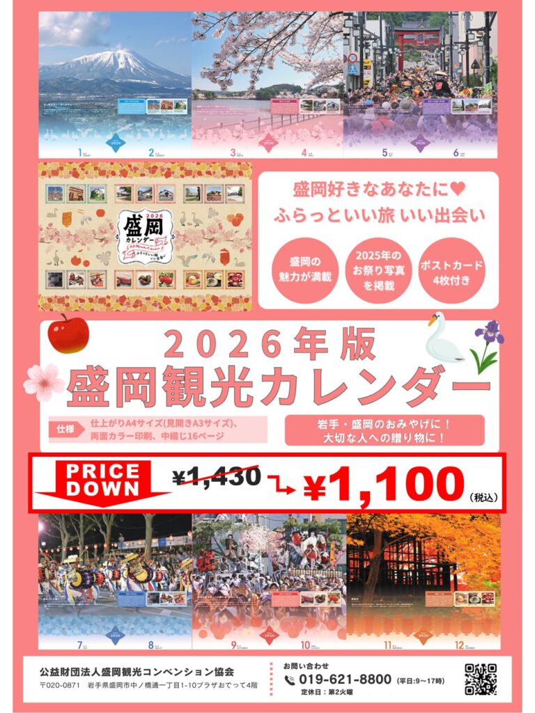 【2/1~値下げ】2026年版 盛岡観光カレンダー~ふらっといい旅いい出会い~